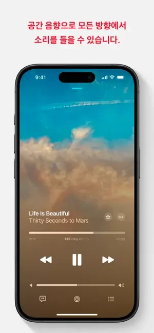 1억 곡의 노래, 수천 개의 엄선된 플레이리스트 및 내가 알고 있고 좋아하는 아티스트의 오리지널 콘텐츠를 광고 없이 무제한으로 이용할 수 있습니다. Dolby Atmos를 통한 공간 음향으로 모든 방향에서 울려 퍼지는 사운드를 들을 수 있습니다.
