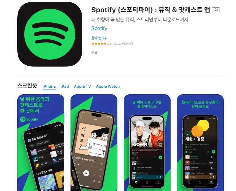 3. 아이폰 Spotify (스포티파이) : 뮤직 & 팟캐스트 앱 앱