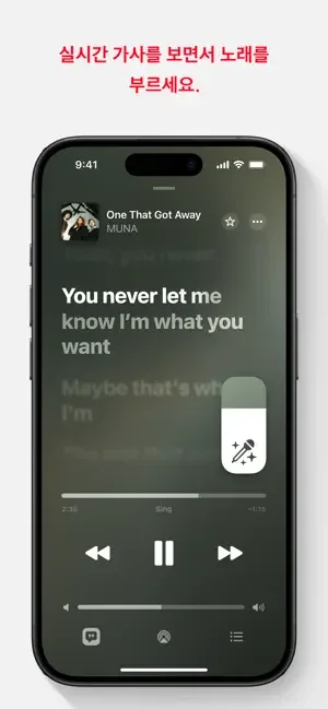 • 가사로 노래를 검색하거나 Siri에게 원하는 노래를 찾아 달라고 요청할 수 있습니다.