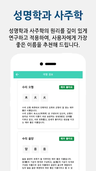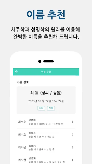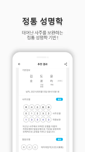 사용자가 입력한 정보를 기반으로 정통 성명학 기반의 이름을 추천해줍니다.
