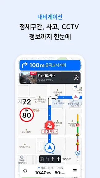 실시간 교통정보를 반영한 경로, Clova 음성명령 기능까지 더해 주행 환경에 최적화된 사용성으로 목적지까지 정확하고 빠르게 안내해요.