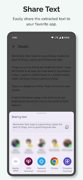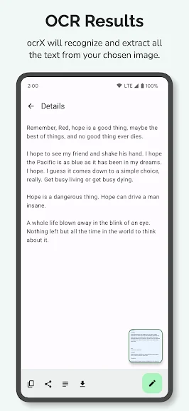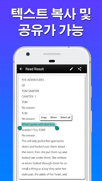 🎯 이미지에서 추출한 텍스트를 복사, 공유 및 저장합니다.