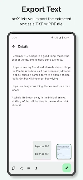 대부분의 ocr 스캐너 무료 앱과 달리, 사진을 텍스트로는 다양한 조명 조건에서 텍스트를 인식하기 위해 최신 텍스트 스캐너 기술로 설계되었습니다.