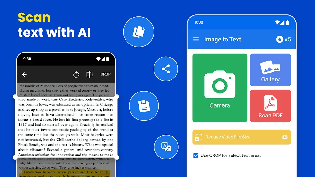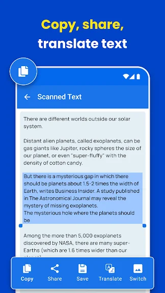 한 번의 탭으로 텍스트 스캐너를 사용하여 이미지를 텍스트 단어로 변환하십시오. 문서 스캐너와 텍스트 추출기는 사진을 텍스트로 즉시 변환합니다.
