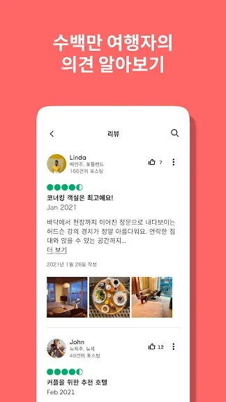 여러분과 같은 여행자들이 남긴 호텔, 음식점, 투어, 관광명소 및 그 외 체험에 대한 수백만 개의 리뷰를 확인하세요