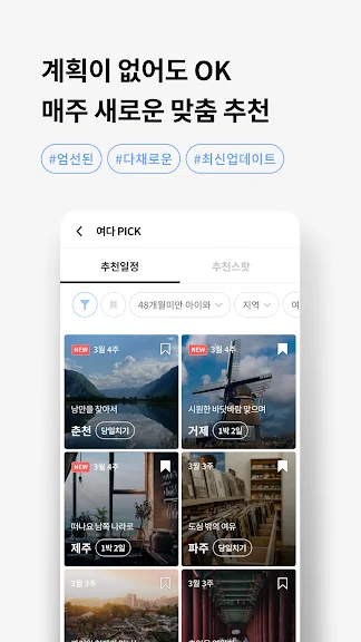 당장이라도 훌쩍 떠날 수 있도록, 출발부터 마무리까지 완성된 여행 일정을 만들어드려요. 당일치기부터 2박 3일까지 원하는 여행기간에 맞는 일정을 만들 수 있어요.