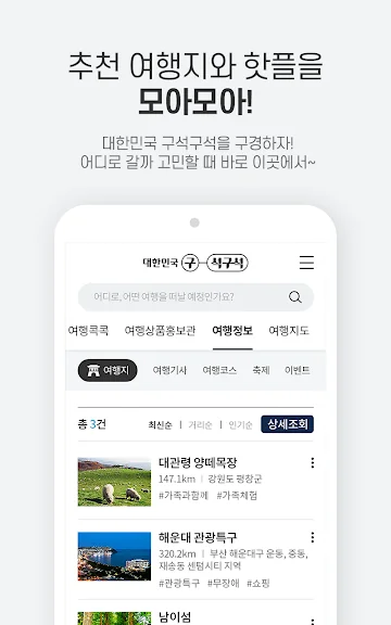 아래는 대한민국 구석구석 어플에 대한 스크린샷 정보입니다.
