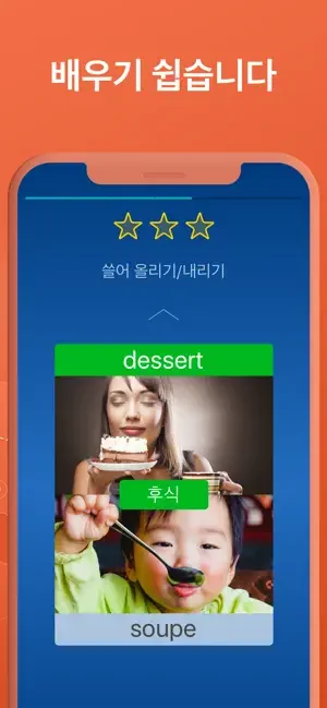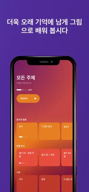 매 단어가 아름답게 표현됩니다. 당신의 눈은 아름다운 그림을 감상할 것이며 정신은 새로운 기억들을 더 효율적으로 저장할 것입니다: 당신은 모국어를 사용하지 않고 새로운 단어를 삽화의 의미들과 연결할것입니다. 빠르게 더 낫게 재미있게!:)