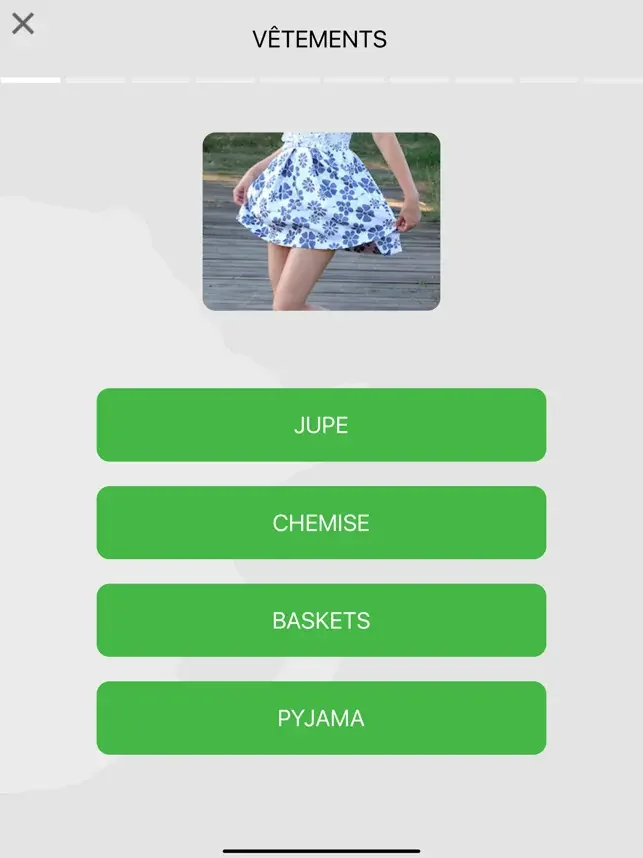 프랑스어 단어의 광범위하고 다양한 선택을 공부하는 것 외에도, 가장 흥미로운 방식으로 듣기, 읽기 및 쓰기 기술을 연습할 수 있습니다! 각 테스트에서는 카테고리의 지식에 따라 수행하고 싶은 활동을 선택할 수 있습니다.
