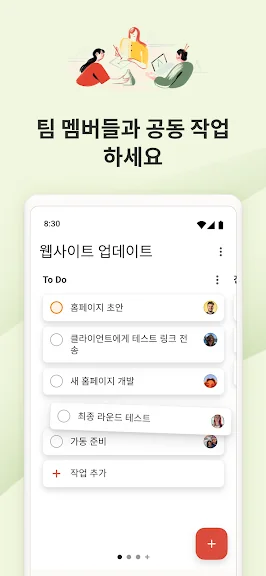 • 친구, 가족, 동료 및 동료와 목록 및 작업 공유