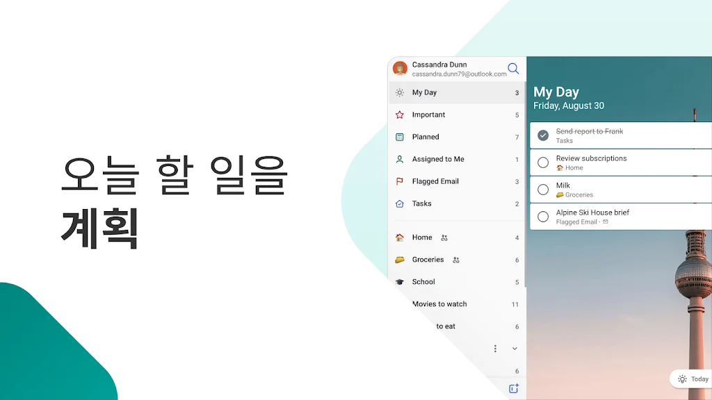 • 추천 작업이 표시되는 맞춤형 일일 플래너 My Day를 사용해 할 일에 집중