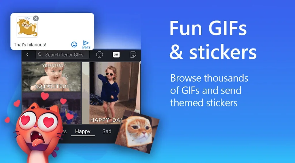 - ✋수천 개의 스마일 및 특별 GIF와 테마를 받고 지금 바로 채팅에서 친구들과 공유해 보세요!