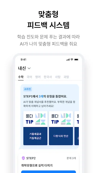 - AI가 나에게 꼭 필요한 문제만 매일 학습 미션으로 제공!