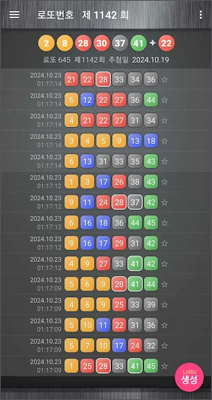 아래는 로또생성 예측번호 생성기 - 예상 번호 생성 어플에 대한 스크린샷 정보입니다.