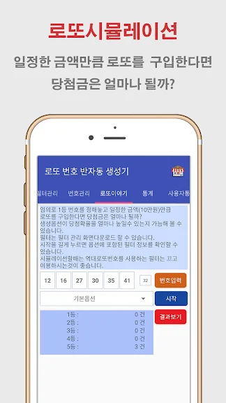 사용자는 기본 제공된 필터를 참고하여 자신만의 필터를 만들어 활용할 수 있으며, 앱의 모든 데이터는 대한민국 동행복권을 기준으로 합니다.