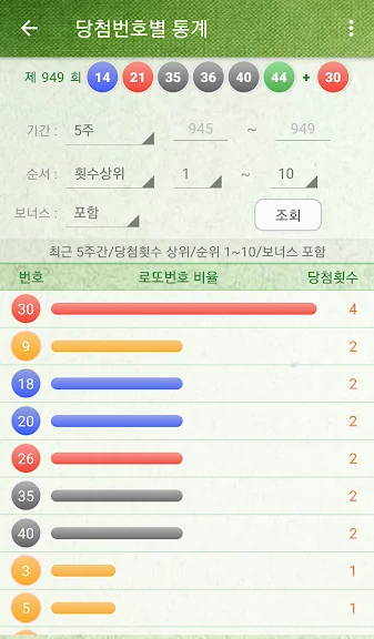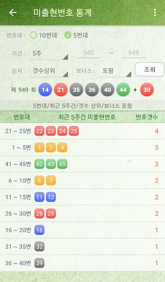 예측 번호는 최근 당첨 번호와 비교하여 첫 화면에서 결과를 확인할 수 있으며, 모든 회차별 번호 내역과 자주 출현하는 번호, 출현 및 미출현 번호 통계 자료를 한눈에 볼 수 있도록 구성되었습니다.