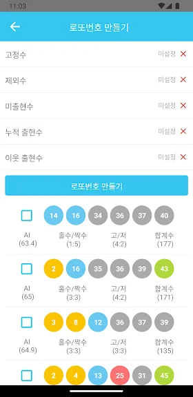2) 로또복권 당첨확인 AI 로또번호생성기 로또 번호 발생기 어플 스크린샷