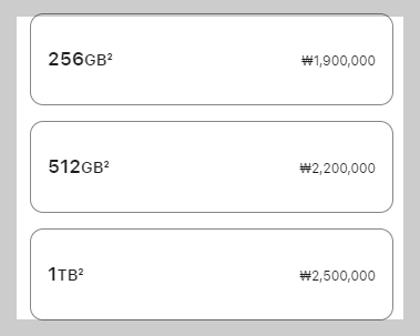 | 저장 용량 | 256GB, 512GB, 1TB 옵션 |