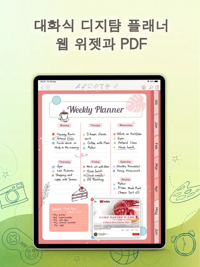 실전 학습을 지원하는 플로팅 메모장, 계산기, 스톱워치, 타이머 등도 유용합니다. 녹음 기능과 브라우저 통합, 눈 보호 모드, 비밀번호 설정 기능은 사용자 편의성을 한층 높여줍니다. 또한 꾸준히 업데이트되는 플래너 템플릿으로 나만의 다이어리를 꾸미는 재미도 놓치지 마세요.