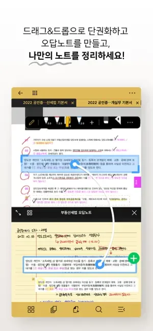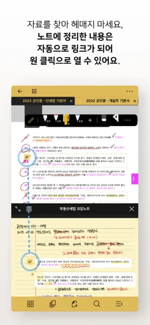 전자책을 넘어서, 스콘은 디지털 교재를 즉시 다운로드하고 노트에 바로 필기할 수 있는 환경을 제공합니다. 교재 내용을 드래그 앤 드롭으로 간단히 정리하고, 여러 교재의 내용을 하나의 단권화 노트로 만들어보세요. 문서를 연결하는 링크 생성 기능으로 학습의 흐름을 방해하지 않고 손쉽게 필요한 자료를 탐색할 수 있습니다.