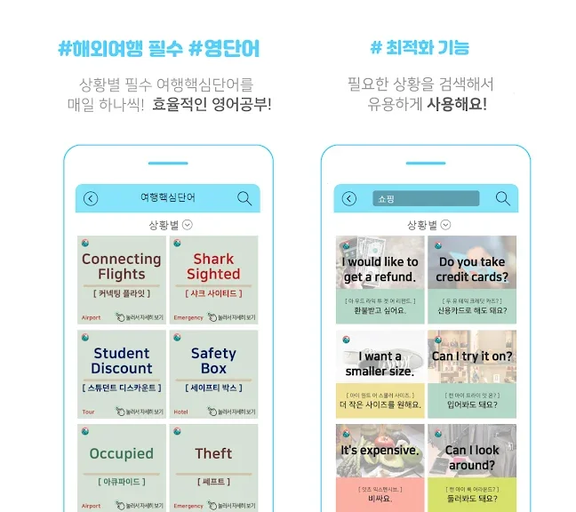 여행영어회화 앱은 해외여행을 위한 필수 도우미입니다. 간단한 클릭만으로 상황별 영어 표현을 쉽고 빠르게 학습할 수 있어 초보자도 부담 없이 사용할 수 있습니다.