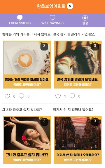 왕초보영어회화의 장점은 실용성과 다양성입니다. 일상 표현부터 멋진 영어 속담까지 폭넓은 콘텐츠를 제공하며, 필요한 부분을 보관함에 저장해 언제든 복습할 수 있습니다. 패턴 학습을 통해 반복적으로 연습하면 영어로 말하는 두려움을 극복할 수 있습니다.