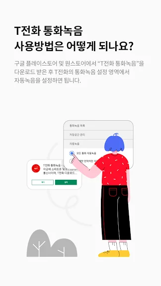 사용 방법은 간단합니다. T전화를 기본 전화 앱으로 설정한 후, 통화 시 자동 또는 수동으로 녹음을 활성화하면 됩니다. 녹음된 파일은 스마트폰에 안전하게 저장되며, 필요 시 빠르게 찾아 들을 수 있습니다.