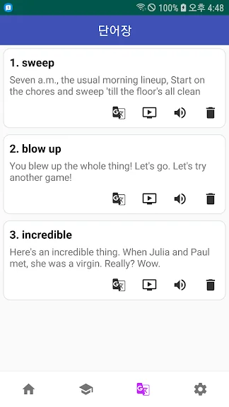 영단어를 단어장에 저장하는 기능이 있어서, 잘 모르는 영단어를 효율적으로 암기할 수 있습니다.