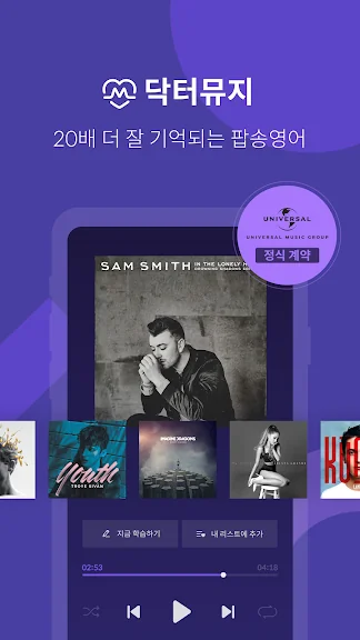 아래는 닥터뮤지 - 팝송영어 & 영어인강 어플에 대한 스크린샷 정보입니다.