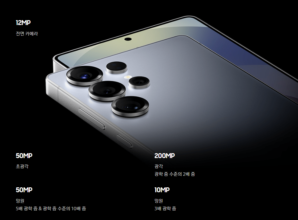 갤럭시 S25 울트라는 ProVisual Engine이 적용된 차세대 카메라 시스템을 갖추고 있습니다. 이 시스템은 이전 모델 대비 더욱 정교한 사진 및 영상 촬영이 가능하며, 3배 및 5배 광학 줌을 지원해 먼 거리에서도 선명한 결과물을 제공합니다. 추가적으로 오디오 지우개 기능을 통해 영상 속 불필요한 소음을 제거하고 몰입도 높은 영상을 제작할 수 있습니다.