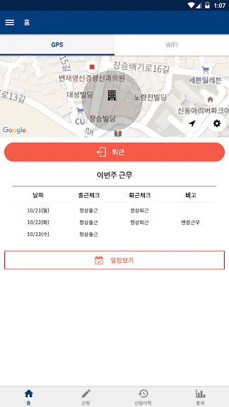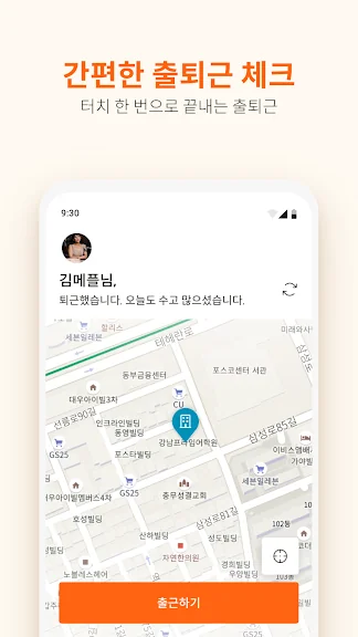 - Wi-fi, GPS를 통해 출퇴근 시간을 체크할 수 있습니다.