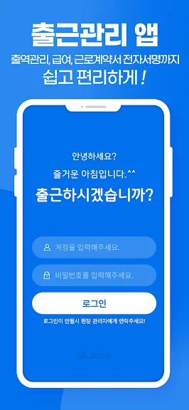 근태도우미 (Glabs) 어플에 대한 스크린샷 정보가 필요하시다면 아래 이미지를 참고하시기 바랍니다.