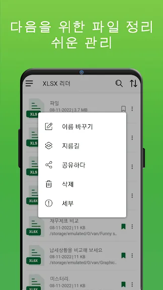 XLSX 뷰어: XLS 읽기 어플에 대한 스크린샷 정보가 필요하시다면 아래 이미지를 참고하시기 바랍니다.