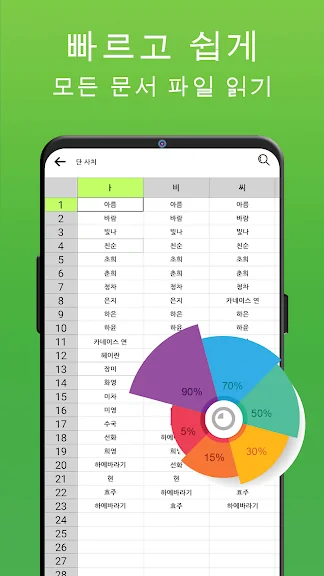이 어플은 구글플레이스토어에서 "엑셀 뷰어"로 검색했을때 3번째로 나오는 어플입니다. 아래는 문서뷰어, PDF 파일 읽기 - 한글뷰어, 오피스 뷰어 어플에 대한 자세한 설명이니 참고하세요.