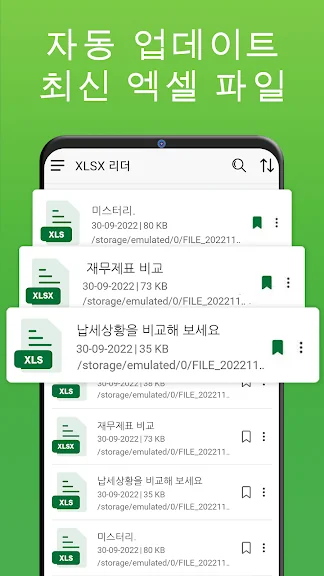 아래는 XLSX 뷰어: XLS 읽기 어플에 대한 스크린샷 정보입니다.