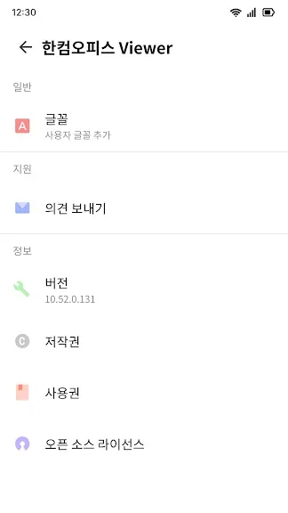 한컴오피스 Viewer 어플에 대한 스크린샷 정보가 필요하시다면 아래 이미지를 참고하시기 바랍니다.