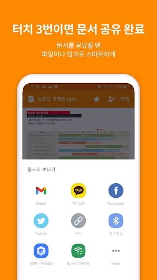 파일에 별 표시를 추가하여 중요 문서로 분류하거나 다른 사람에게 링크 주소, 이메일, 블루투스, 클라우드 저장소, Wi-Fi 등을 통해 파일을 공유할 수 있습니다.