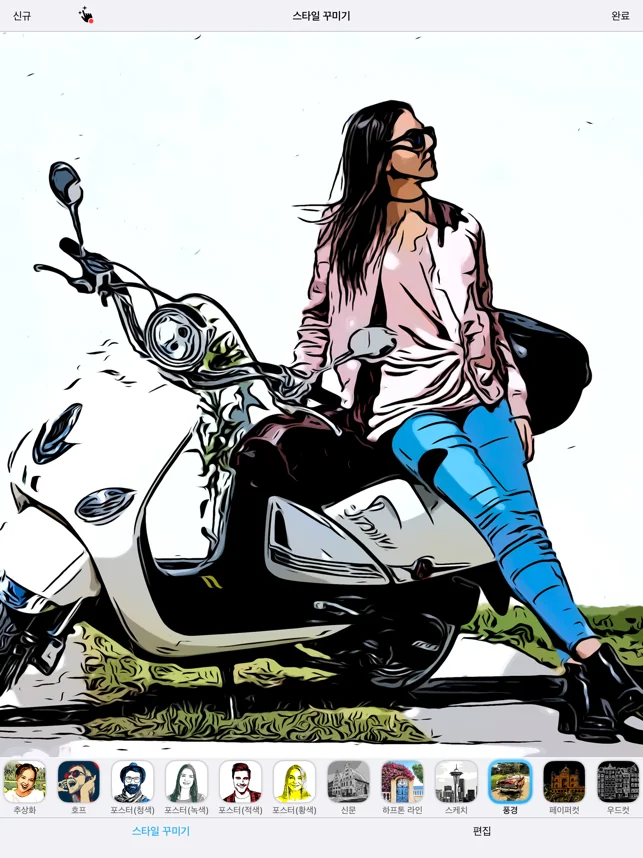 추가로 Clip2Comic Premium** 기능을 사용하면 새로운 편집 툴과 함께 다양한 기회를 제공합니다. 손가락이나 애플 펜슬이 있으면 원하지 않는 윤곽선을 지우거나 선을 더 얇게, 혹은 두껍게 만들거나, 만화처럼 변한 사진에서 기존 색상을 지울 수도 있습니다. 이 방법을 응용해 초상화를 리터치하거나 컬러링 페이지를 만들 수도 있습니다! 변형 도구를 사용해 작품을 캐리커처로 만들고 재미있는 얼굴을 만들어 보세요. 그림을 수정하고, 일부 모양을 고치거나 부풀려보세요. 아주 쉽습니다. 마지막으로 Clip2Comic의 색상 필터 또는 포스터 스타일을 사용해 특별한 만화를 만들어보세요.