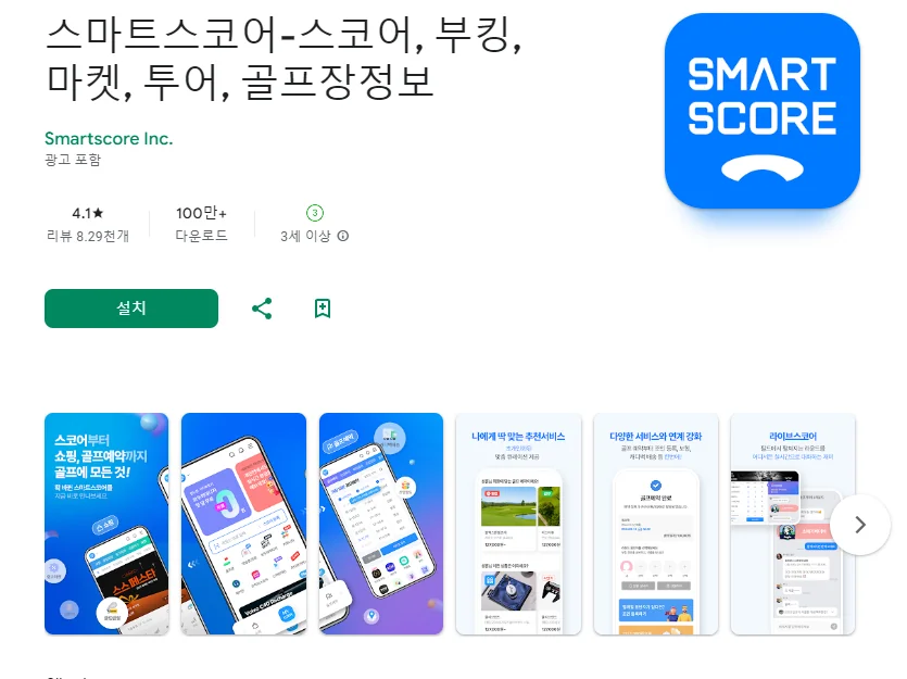 아래는 스마트스코어-스코어, 부킹, 마켓, 투어, 골프장정보 어플에 대한 스크린샷 정보입니다.