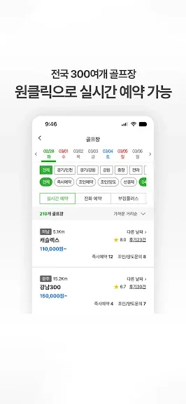 - 전국 300여 개 이상의 골프장 예약 가능!