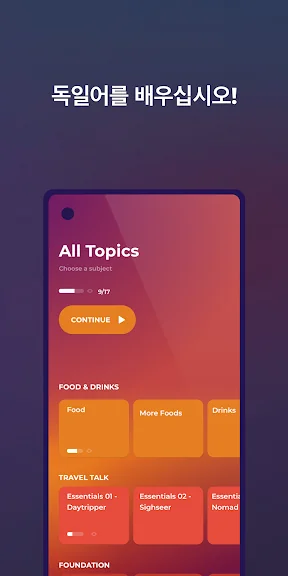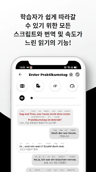 • 자신의 속도에 맞는 독일어 학습 앱: 자신만의 학습 경험을 맞춤 설정하세요! 관심 있는 주제를 선택하고 필요한 경우 오디오 속도를 조정하세요.