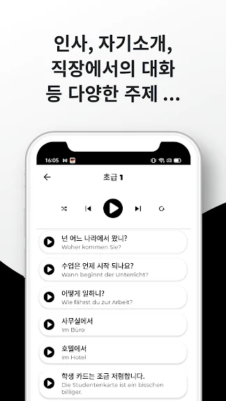 초 고음질 오디오와 전문 성우 발음. 원어민의 대화를 듣고 정확한 독일어 발음을 공부 할 수 있습니다.
