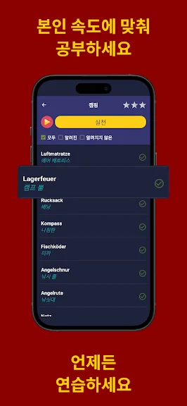 • 오프라인 학습: 인터넷이 없어도 괜찮습니다! 앱을 사용하여 여유 시간에 언제 어디서나 오프라인으로 독일어를 배우세요.