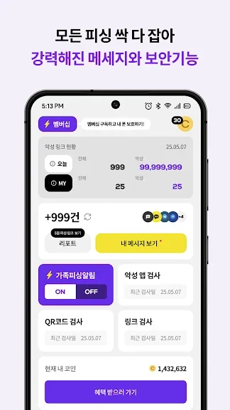 1️⃣ 피싱 메세지 싹 다 잡아주는 메세지 기능📩