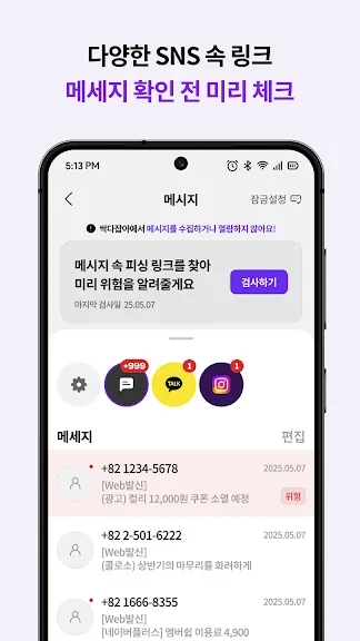 1️⃣ 피싱 메세지 싹 다 잡아주는 메세지 기능📩