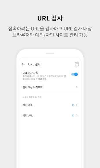 • URL을 검사할 브라우저와 예외 및 차단 사이트를 관리할 수 있어요.