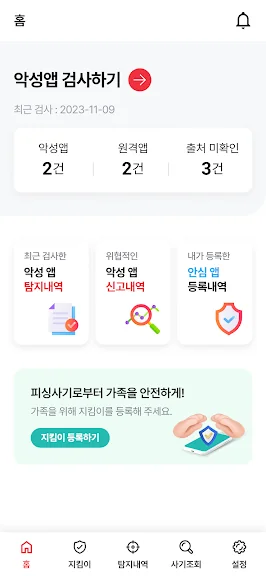 ▶ 가족 간 계정 연동이 가능한 지킴이 기능으로 나와 내 가족 모두의 피싱 피해를 예방합니다.