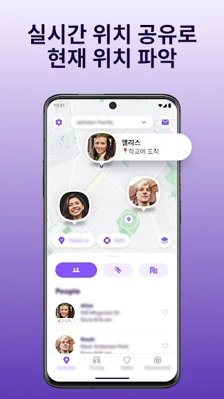 - 지도상에서 가족과 친구의 실시간 위치를 손쉽게 확인합니다.