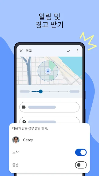 - 소중한 사람이 집, 직장 또는 학교에 도착하거나 외출할 때 장소 알림을 받습니다.