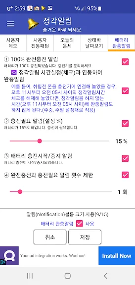 말하는 알람시계 - 정각알림 중간 간격 배터리 탁상시계 어플을 만들어 주신 개발자님 감사합니다~